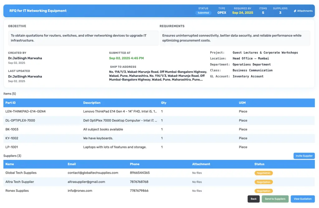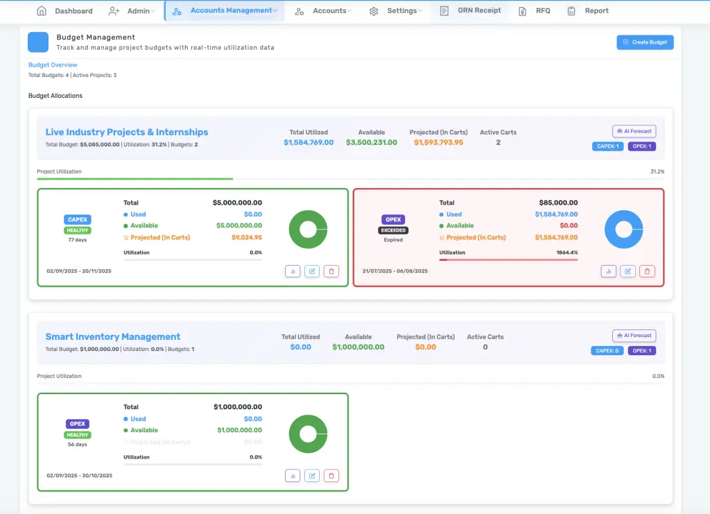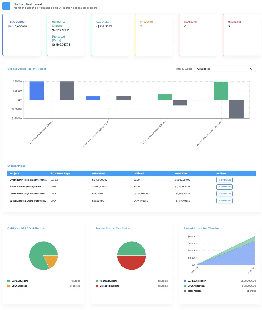 Our education procurement software simplifies sourcing and budgeting for schools, universities, training institutes, and research organizations. With eProcurement for schools and a robust university procurement system, institutions can digitize every purchase process. Leverage AI-driven procurement in education to forecast budgets, manage contracts, and strengthen supplier relationships. From school supplier management to education contract management, our platform empowers institutions with smarter and more transparent purchasing. We also support EdTech procurement solutions for technology-driven learning environments.