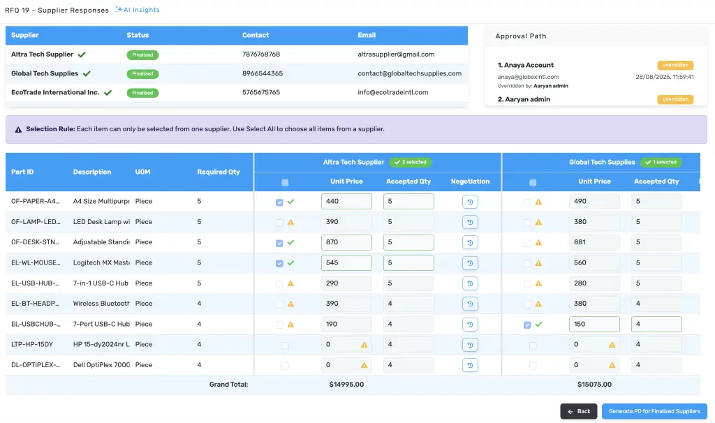 Smarter sourcing for fast-moving businesses. Automate purchase requests and orders to save time. Get AI-driven price comparisons for bulk buying. Ensure real-time inventory control to avoid stockouts.