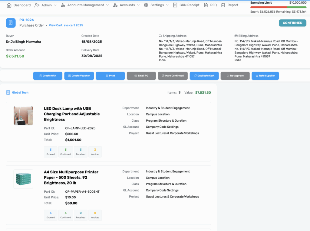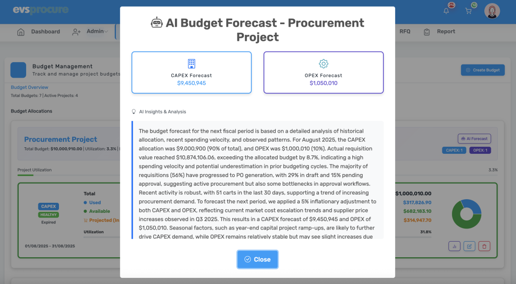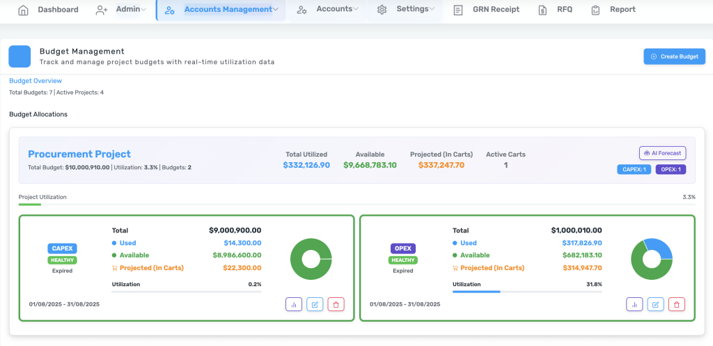 Empower your teams with transparent, real-time budgeting. Allocate by project, track expenses, and prevent overspending with live budget checks at every stage of procurement. Manage Capex & Opex effortlessly with real-time budget insights.